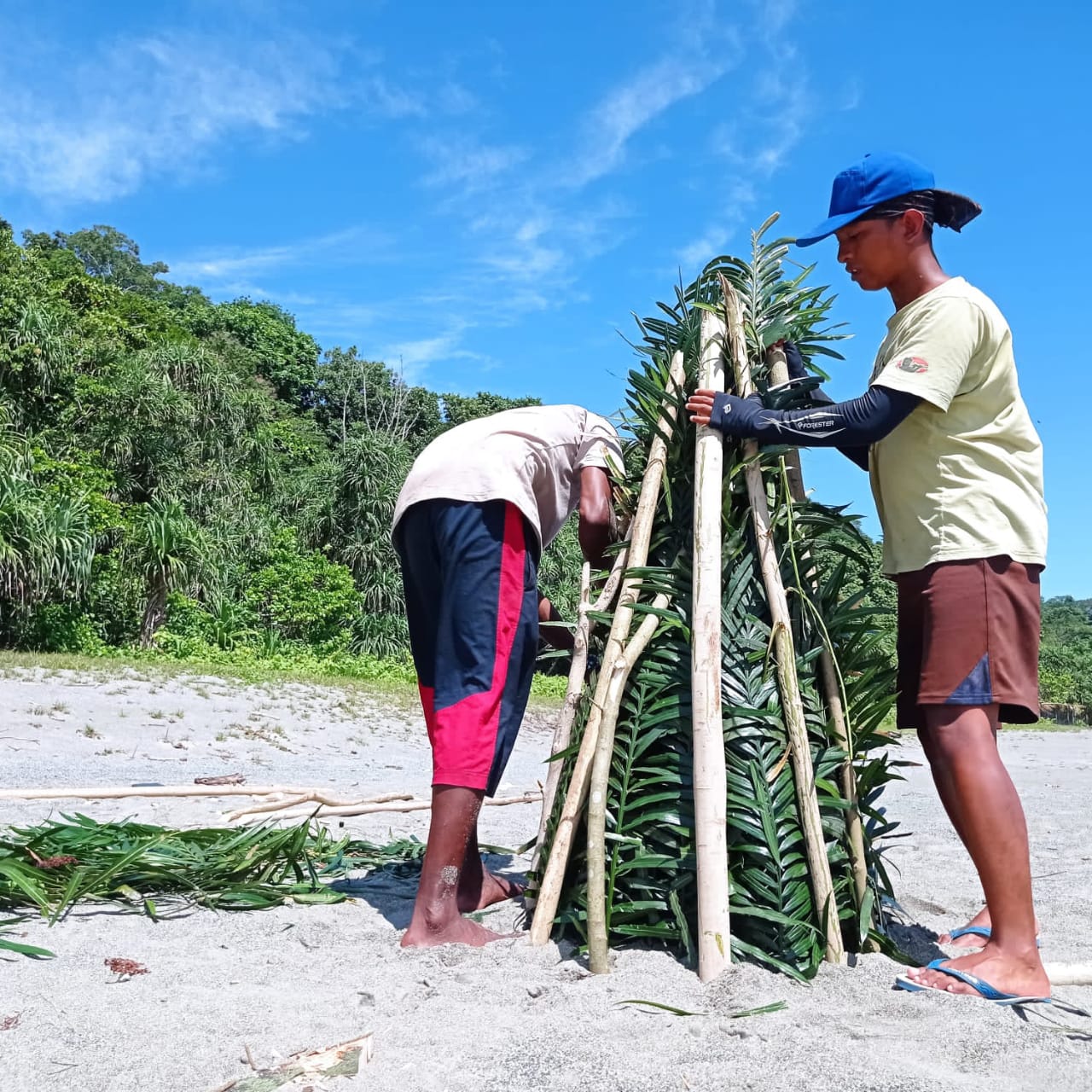 Masyarakat lokal pun berperan aktif dalam pembuatan kandang relokasi dan serta pemindahan sarang ke kandang relokasi. Semua kandang relokasi di Jeen Womom dibuat oleh kelompok masyarakat, seperti di Pantai Jeen Syuab, masyarakat dari Kampung Wau dan Weyaf yang berdekatan dengan pantai tersebut yang membuat kandang-kandang ini. Masyarakat harus memastikan untuk membersihkan tumbuhan serta akar-akar tumbuhan Ipomoea setelah konstruksi rangka dan atap selesai. Tiap tahunnya kurang lebih ada 6 kandang relokasi yang beroperasi di Pantai Jeen Syuab.