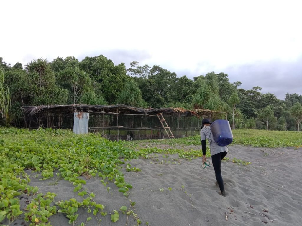 Kandang Relokasi Menyelamatkan Sarang Penyu dari Invasi akar Petatas Pantai (Ipomoea sp.)