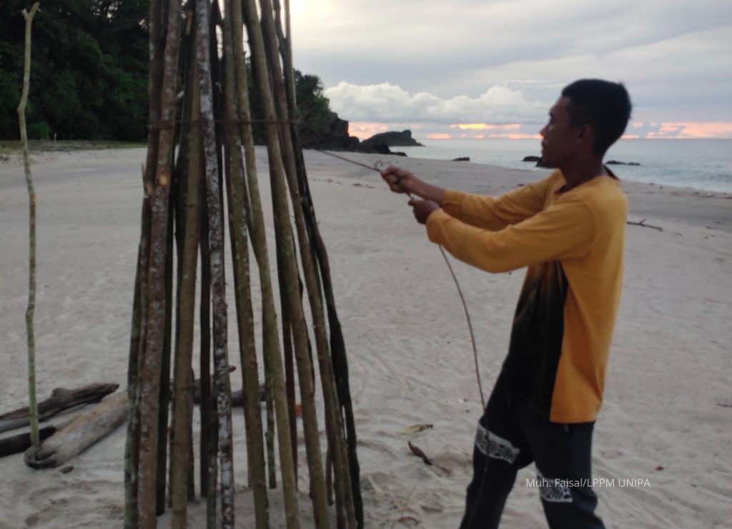 Faisal mengikat Tali Hutan di Perlindungan Penyu Kecil